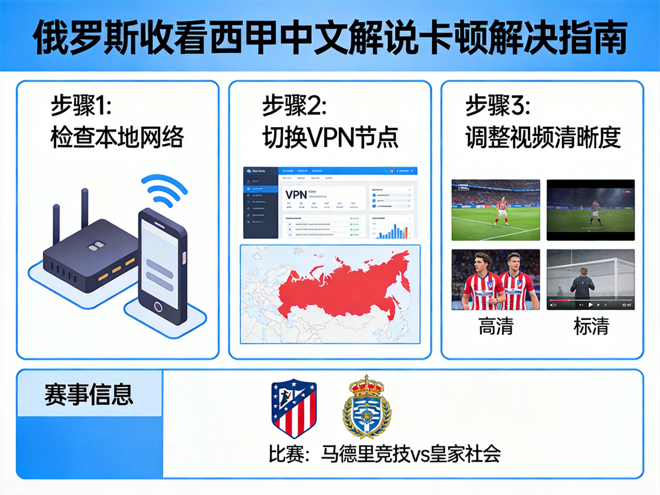 不少在俄华人、留学生看西甲马竞对皇家社会的中文解说时总遇到卡顿、加载失败、音画不同步问题,本文结合实测经验拆解卡顿根源,给出可落地的解决方法,附真实测速数据、常见坑点和替代观赛渠道,帮你流畅看完整场比赛。
