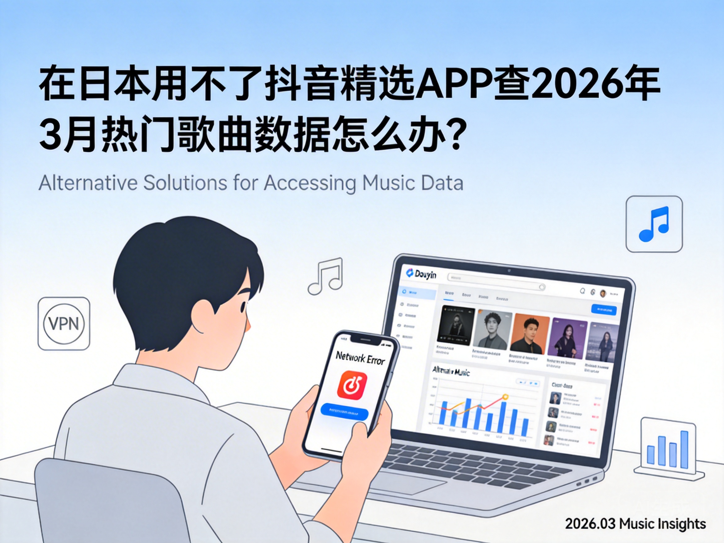 本文针对在日本无法访问抖音精选APP查询2026年3月热门歌曲数据的问题,从合规替代工具、数据迁移方案、跨境访问规范及官方合作渠道四个维度,提供了可落地的解决路径,帮助不同场景的用户获取所需数据,同时确保符合中日两国的监管政策。